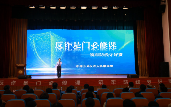 启动仪式结束后,廖珮旭警官作了题为“反诈是门必修课”的专题讲座。他结合实际案例,教育同学们要做到“三不一要”——不轻信陌生信息、不透露个人隐私、不转账陌生账户,如果发现自己可能遭遇诈骗,要第一时间向公安机关报案,以保护自己及家人的财产安全。
