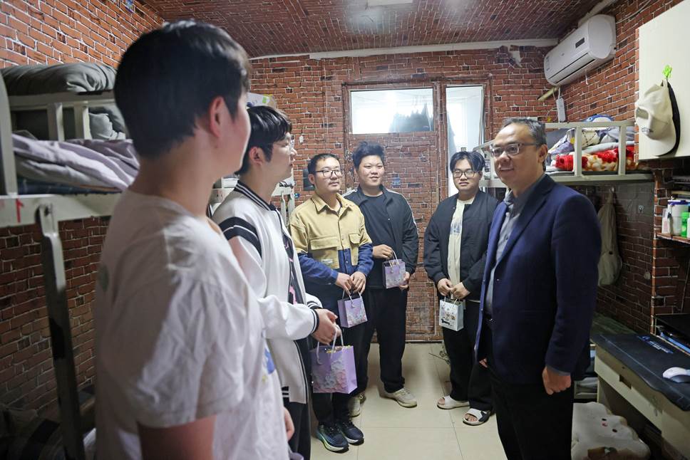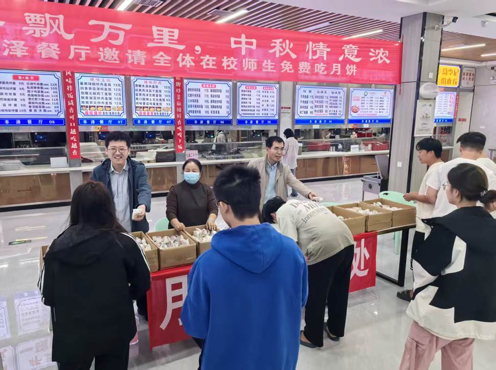 学校党委副书记魏新华、副校长黄振中带领相关部门负责同志向在校值班值守人员及留校学生发放香甜可口的月饼,并送上诚挚的节日祝愿。活动现场气氛热烈,温馨有序,香甜的月饼、温暖的笑容,勾勒出太阳集团校园里一道动人的风景。