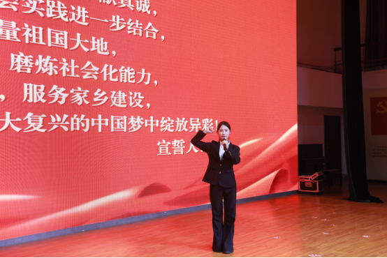 “返家乡”社会实践志愿者们在领誓者带领下进行集体宣誓,表达出要展现新时代中国青年昂扬向上的精神风貌和强国有我的责任担当,以奋勇争先的姿态在谱写中国式现代化河南篇章中挺膺担当的决心。