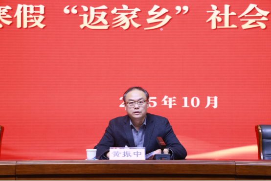 黄振中在讲话中肯定了我集团暑期社会实践活动所取得的丰硕成果,对即将开展的寒假社会实践活动提出四点期望:一是要“向下扎根”,少些“浮躁气”,多些“烟火气”。真正在社会实践的“大熔炉”中锤炼品格、增长才干。二是要“向上生长”,少些“畏难心”,多些“进取心”。用迎难而上、百折不挠的劲头去“打熬筋骨”,练就“提笔能写、遇事能办、攻坚能上”的硬本领。三是要“久久为功”,少些“一阵风”,多些“长坚持”。把实践中收获的“好案例”“新经验”广泛传播,形成“一盏灯照亮一大片”的示范效应。四是要“时时警惕”,少些“马虎眼”,多些“细心思”。做好“安全攻略”,提前制定预案,严守纪律“不越线”,做好个人防护“不掉链”,确保每次实践活动都高质量完成。